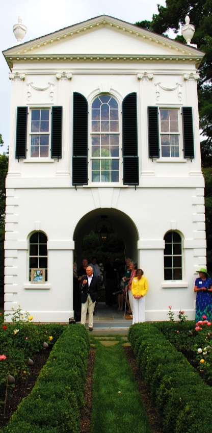 It is not often that you see a garden folly of such magnificent beauty preening above the evergreens in a suburban landscape. But there it was, in all its glory, taking its place amidst the trees—a replica of an 18th century garden pavilion—grandly anchored on the grounds of a breathtakingly beautiful North Shore estate.