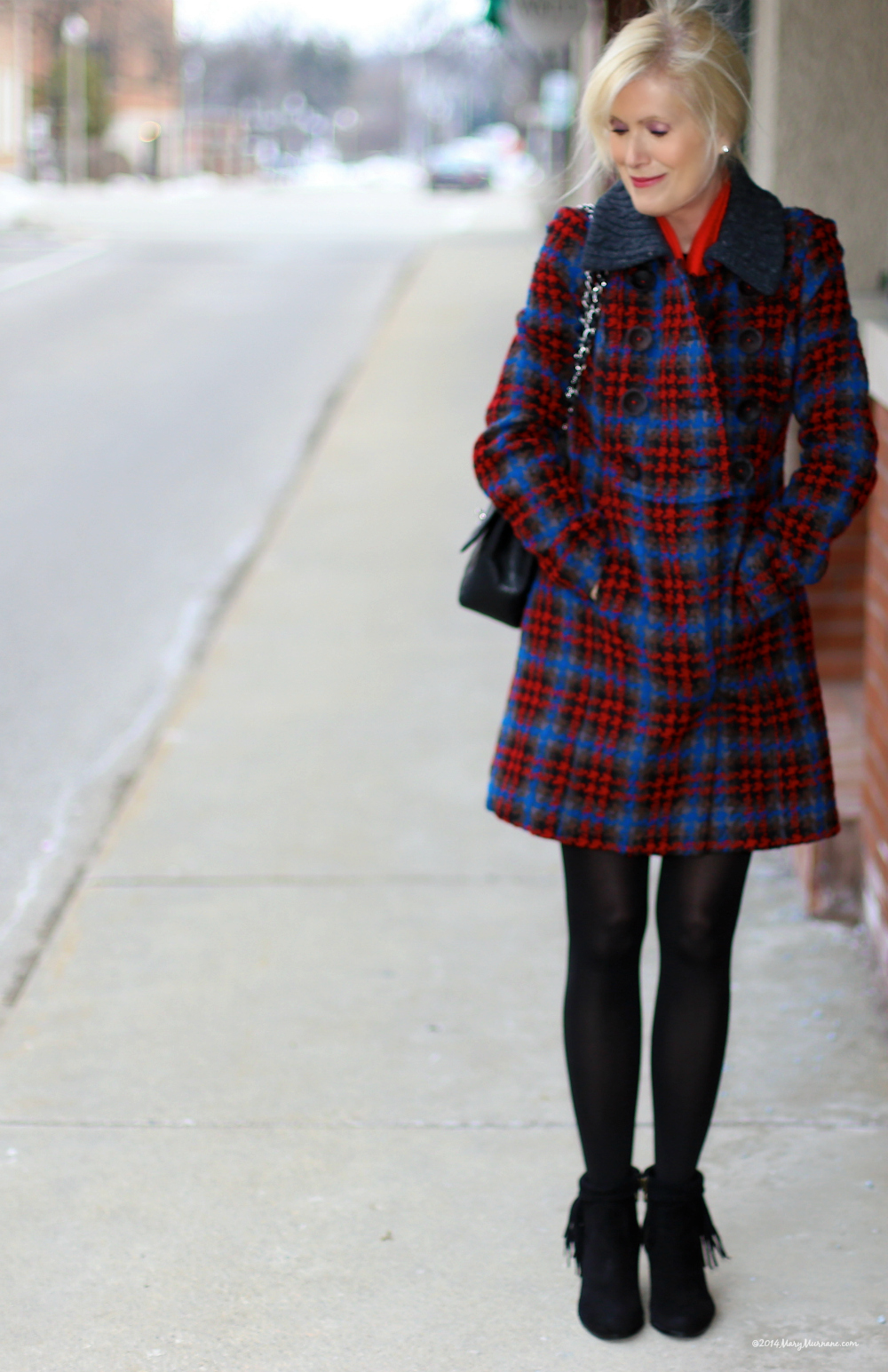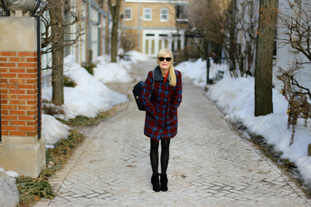 Spring2And right now, despite what the calendar reads, the coat du jour is definitely one that is warm and wintery – like this red plaid bouclé topper I’m wearing.