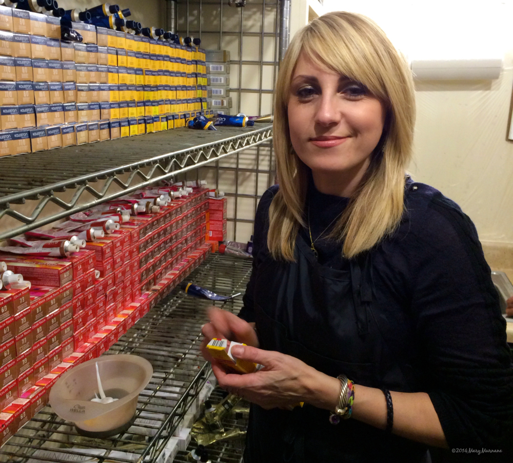 Going blonde is all well and good, but how in the world does the colorist keep straight the countless options available?! I saw the multitude of tubes on Yulia’s shelf and felt that she’d have to take detailed notes on the mixtures and quantities, similar to a chemist (or alchemist, if she’s mixing up gold!).