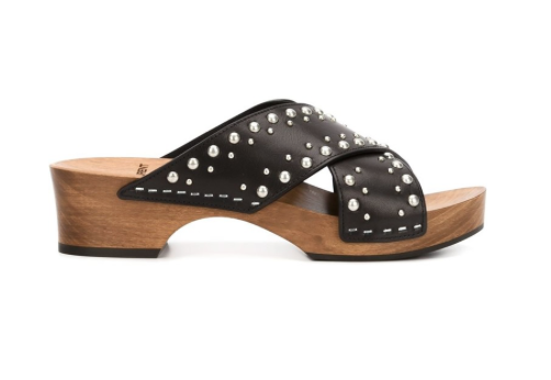 Gucci’s iconic wooden sandal, with it’s leather vamp and gold buckle and nailhead detail ground this outfit and create a chic, casual, modern look. Nothing vintage about it :)