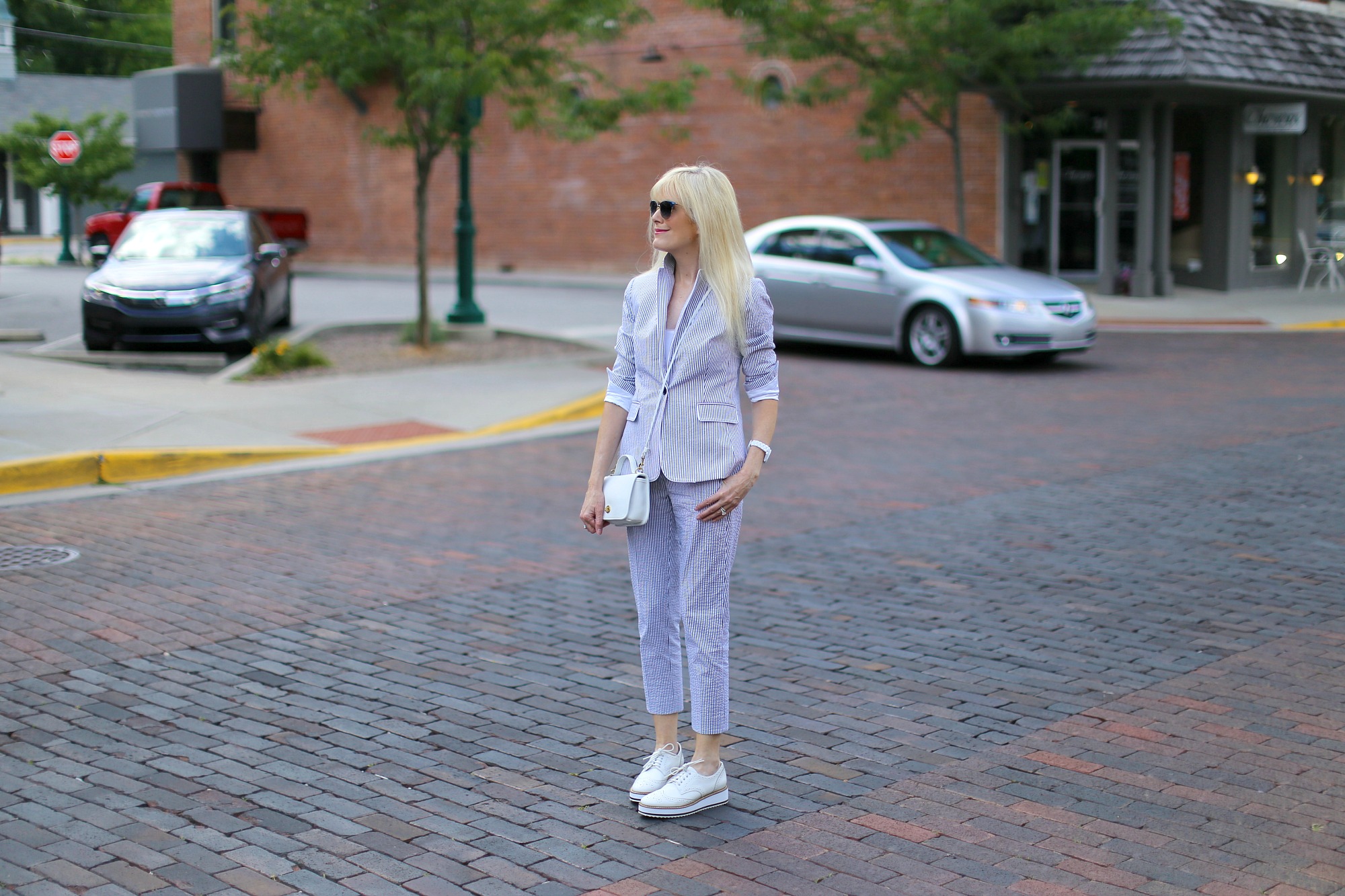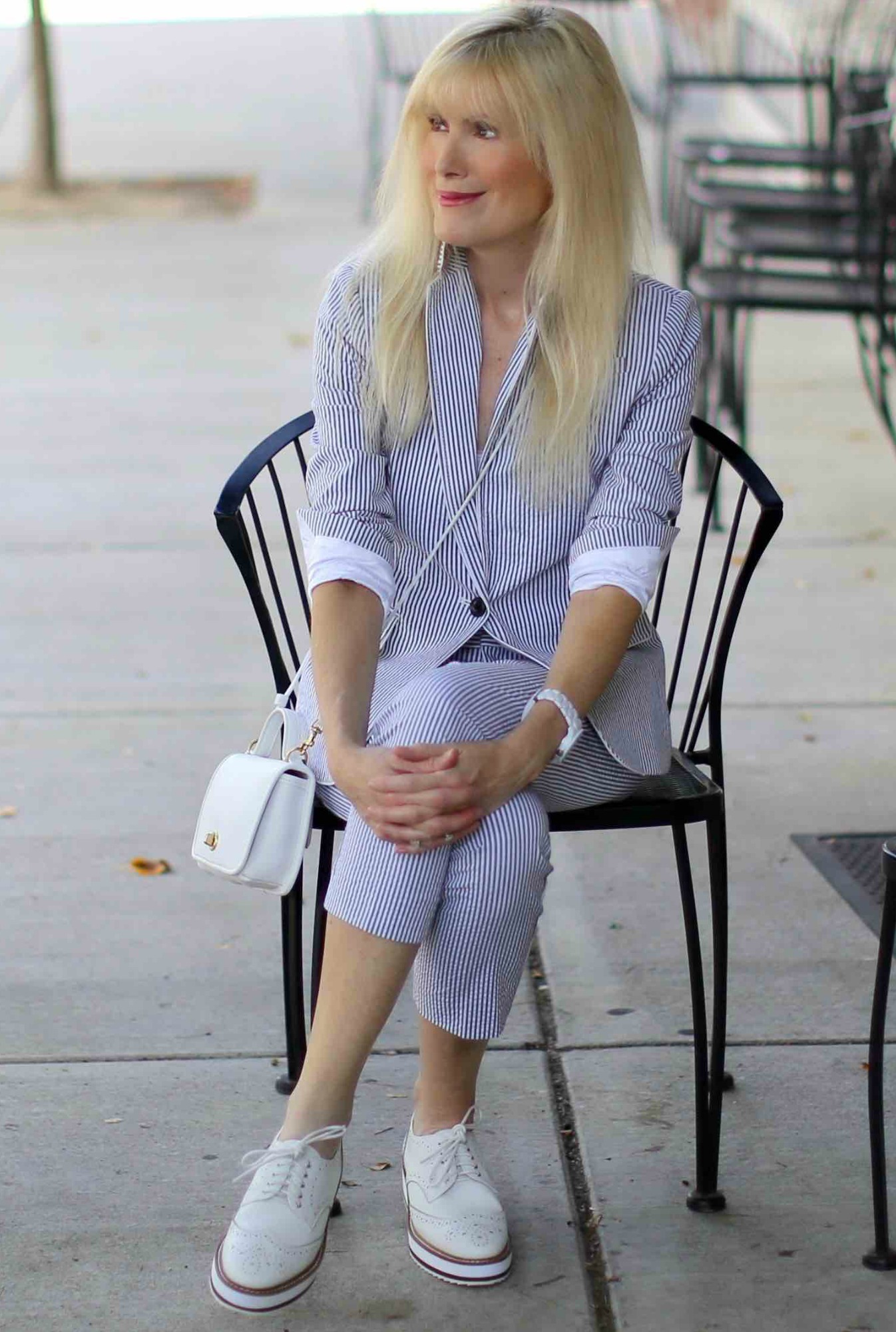 What a pleasant look. The bag and shoes are really cute. I’ve never worn seersucker but once picked it up and was amazed how light it is. Perfect for Summer.