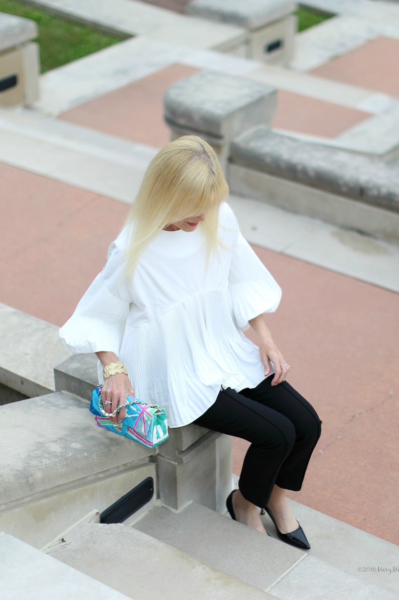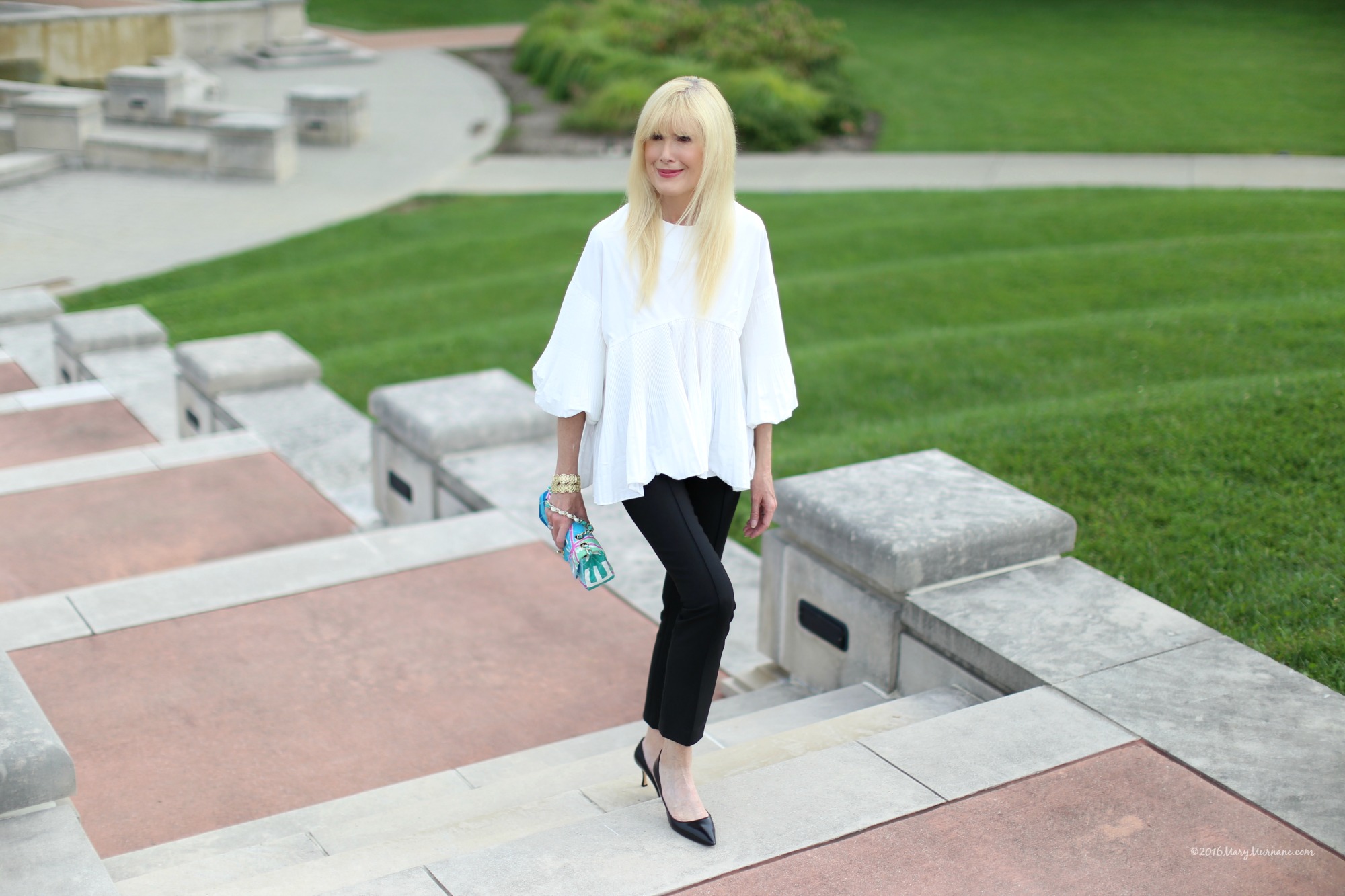 No Mary, I’ve not ventured into the realms of these fab new sleeve shapes, but clearly I need to. You look beautiful and classy as ever. The tailored pants are a great choice allowing the blouse to take centre stage, bravo! Wishing you a lovely week x