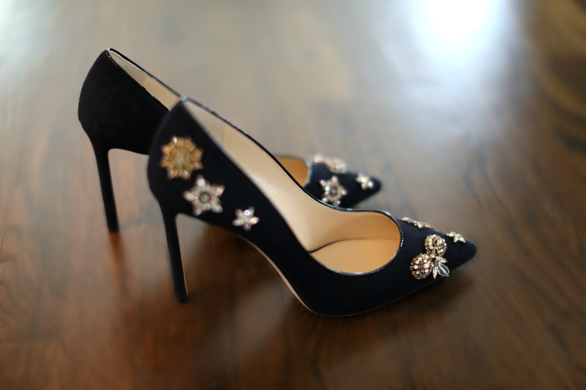 Attended a holiday party yesterday and wore my latest obsession – Jimmy Choo crystal embellished heels. Funny how the tiniest bit of sparkle can change your whole look. Paired with my favorite Frame jeans, a cozy Vince cashmere sweater and my Max Mara camel hair coat, the navy flannel appliqued pumps (currently on sale) delivered the perfect amount of dazzle without feeling over the top. Just right for the afternoon festivities.