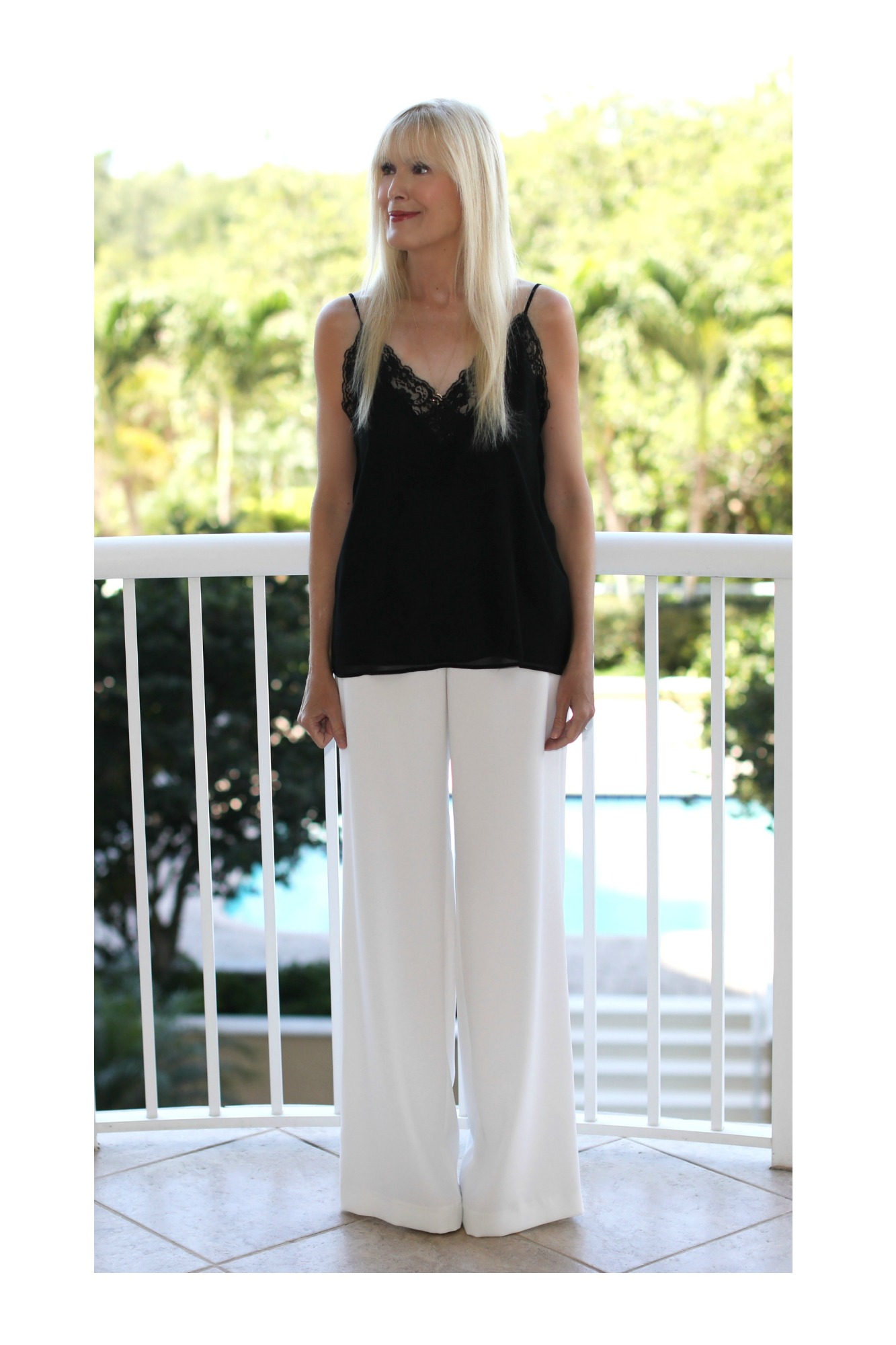 Great styling tips Mary. I think the white trousers you chose are perfect with the lacy camisole.