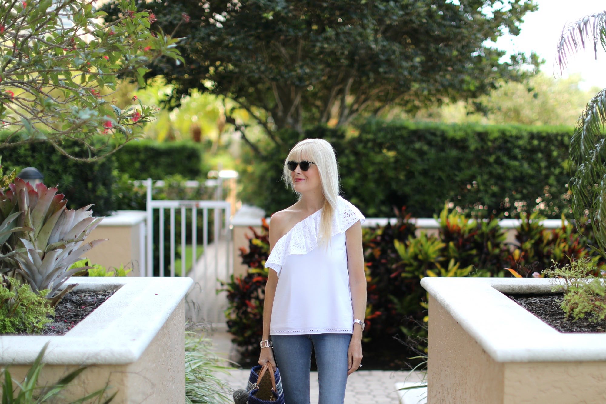Oh, I totally agree with you, off the shoulder tops never stay off your shoulders! lol I think the one shoulder trend is fun and flirty! And I love your top and the eyelet detail. You styled it beautifully. Hope you’re having a great start to the week.