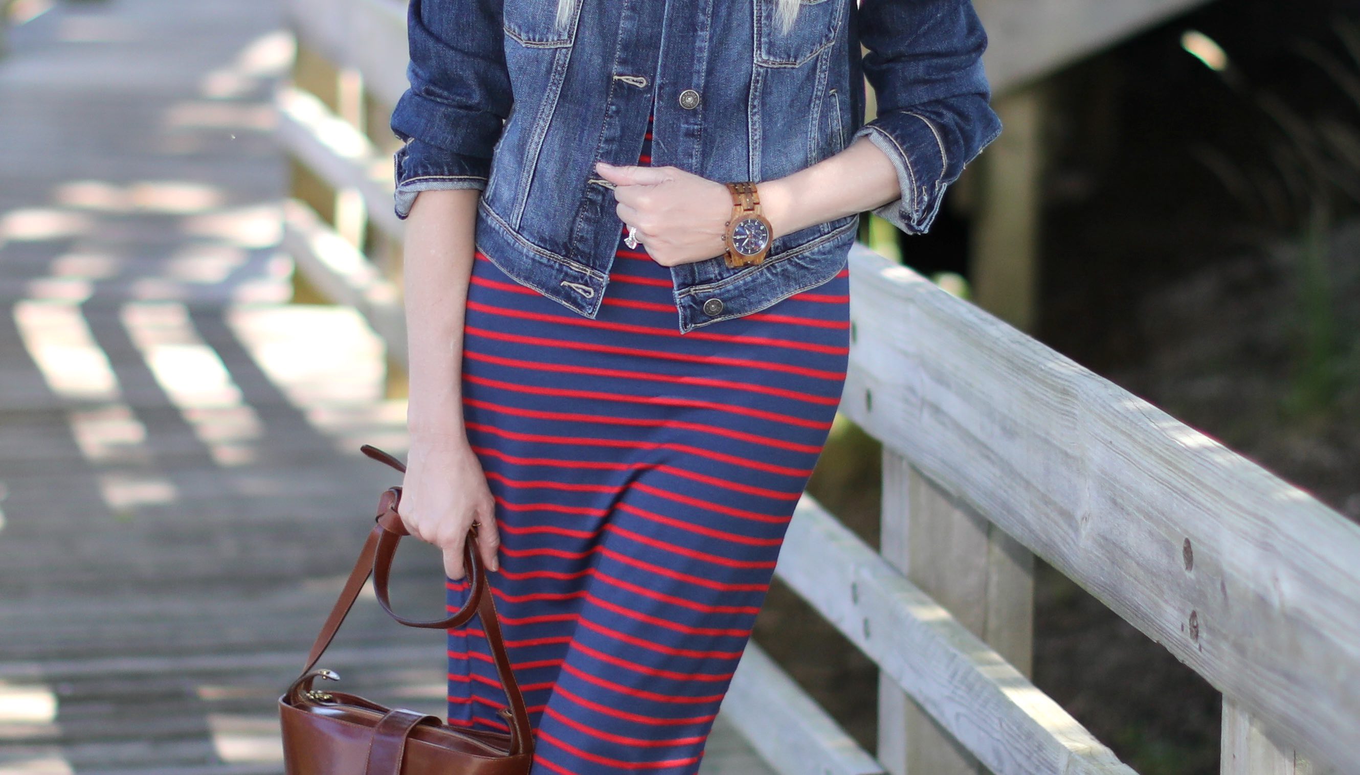 Love your outfit! I have two Madewell jean jackets and I agree– they’re so comfortable! Such a cute look to pair it with the striped maxi.