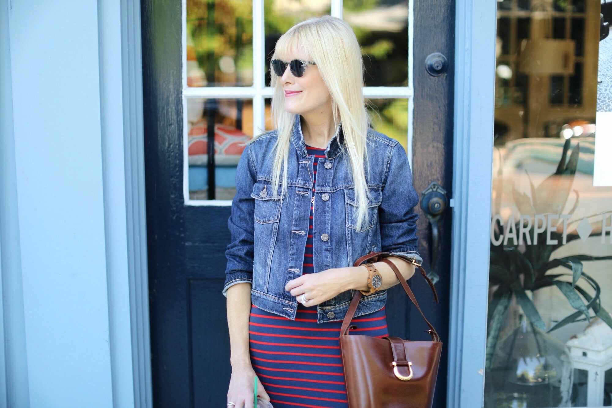 Closet classics are hard to beat. They make getting dressed a breeze and almost always guarantee a chic, polished look. If you’re on the hunt for a little inspiration as we head into summer’s last full month, grab your denim jacket and layer it over a sleek striped dress and you’ll be good to go. I’ve kept things simple here by accessorizing with my favorite slides of the season, a vintage Ferragamo bucket bag and my new Jord watch. Speaking of, congrats to Kelly Pierson, the lucky winner of the Jord Watch giveaway!