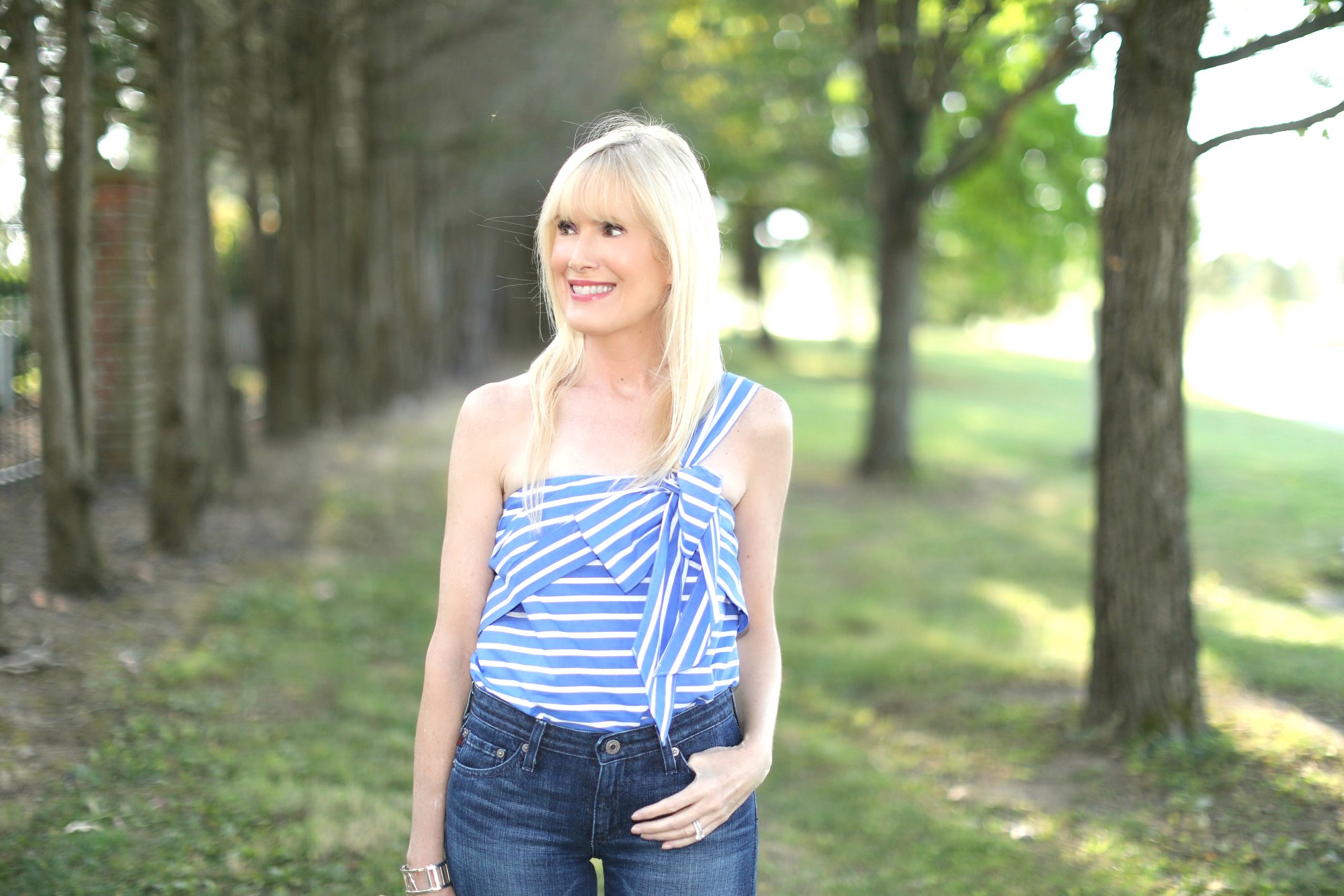 I may not be retiring this silhouette just yet but I’m afraid this particular beauty won’t be making the cut for fall, which, in case you’ve been in a deep sleep for several weeks, is seriously, right around the corner. For now though, this pretty little bow-embellished J.Crew top works perfectly for our still 80-degree days, infusing just the right amount of chic into an otherwise basic look.