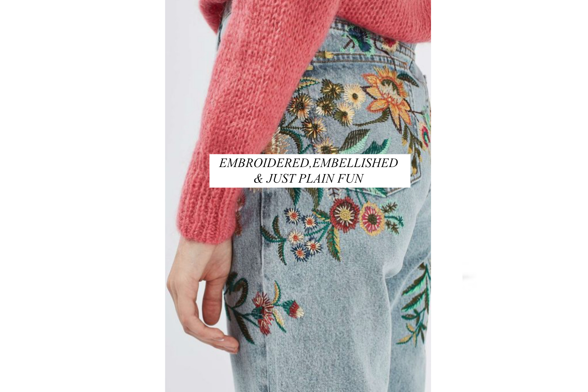 When it comes to denim, it’s always fun to add at least one creative cut to your closet mix. I’m particularly liking embellished (major splurge) and embroidered ( major steal!) jeans right now, and, of course, the fringe-hem is already taking up a lot of space in my wardrobe :)