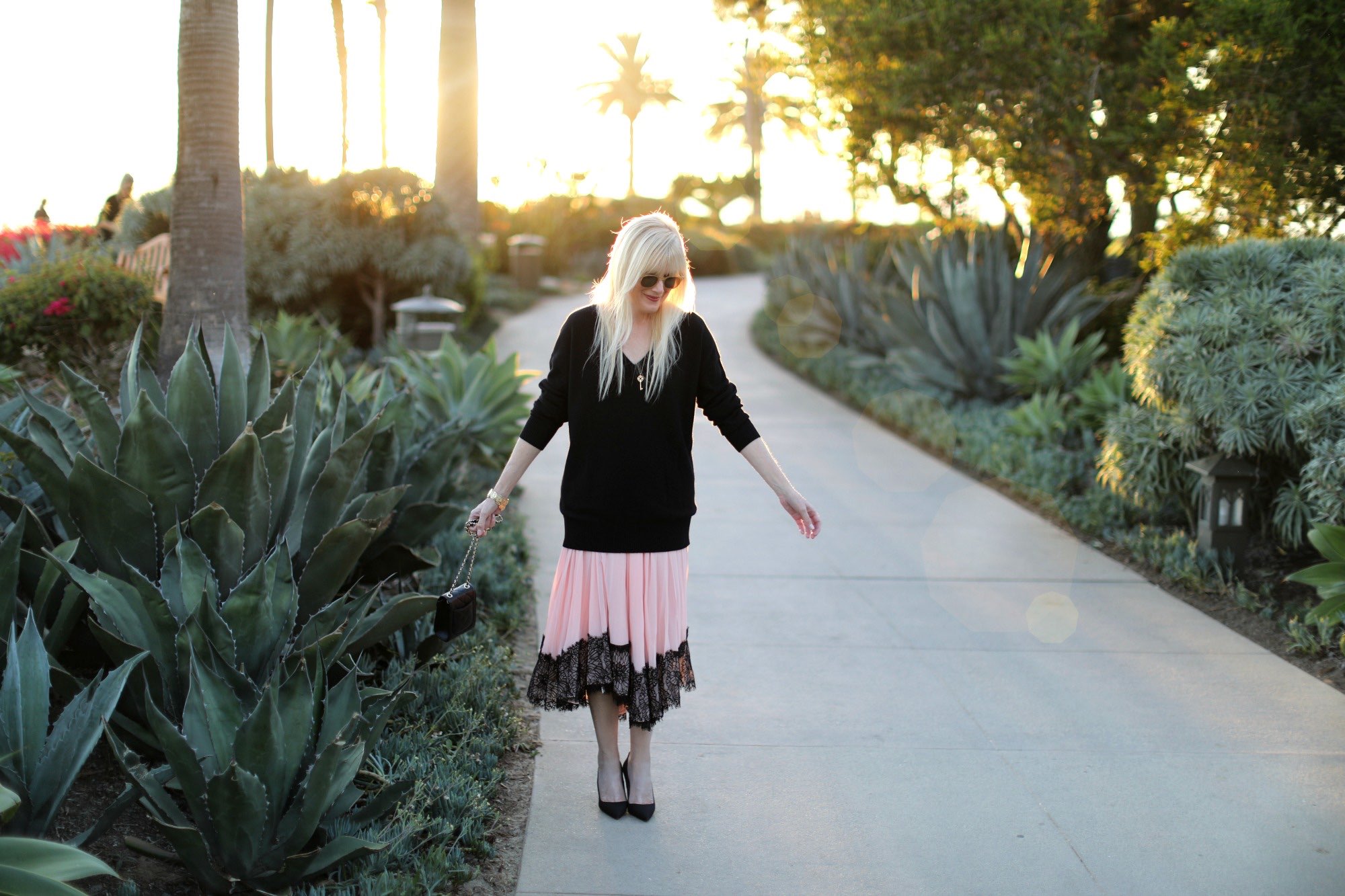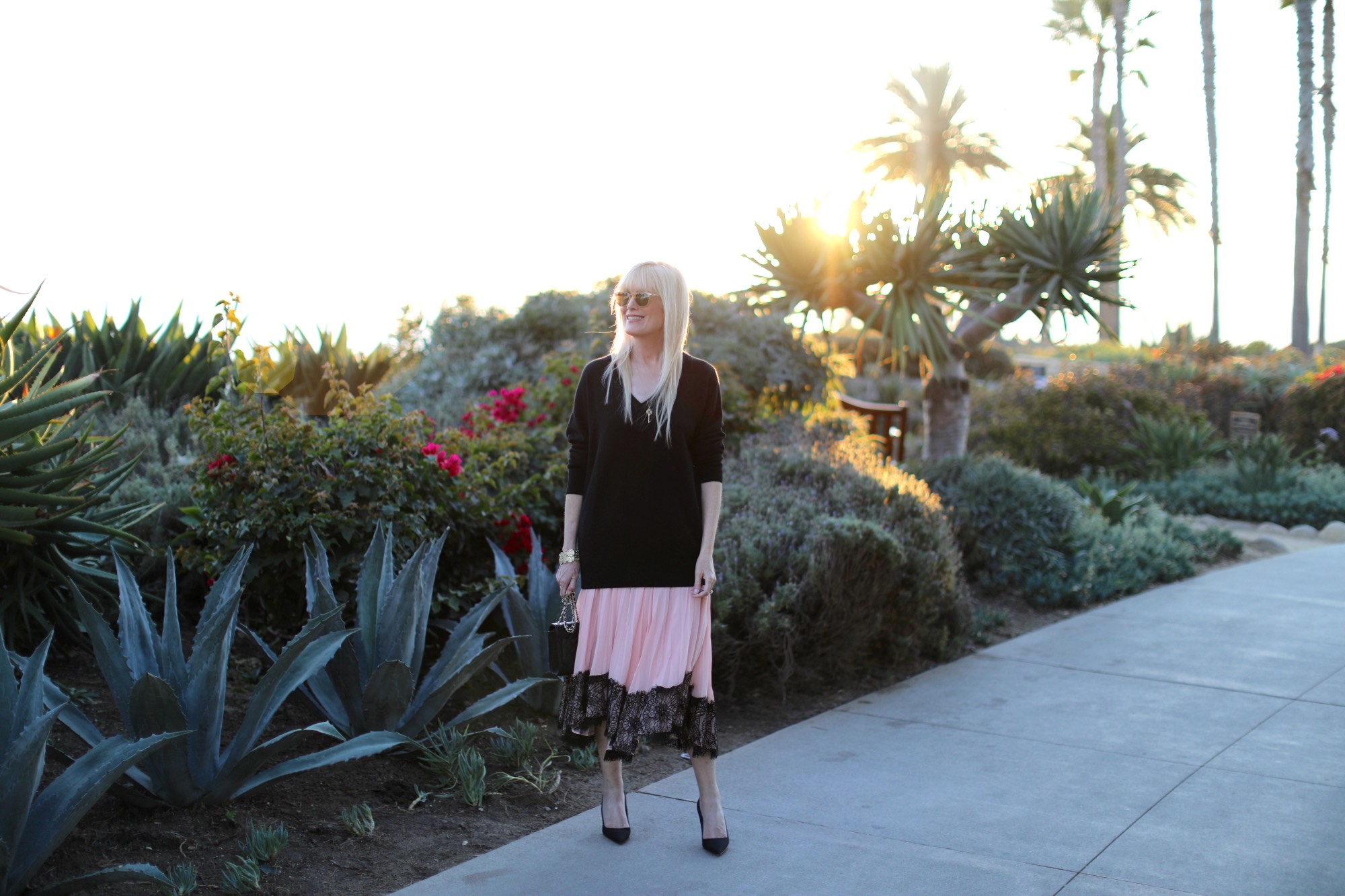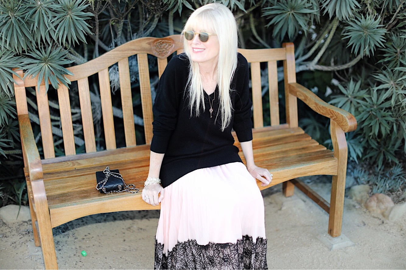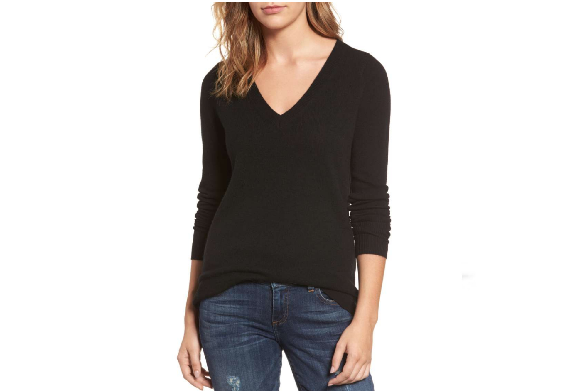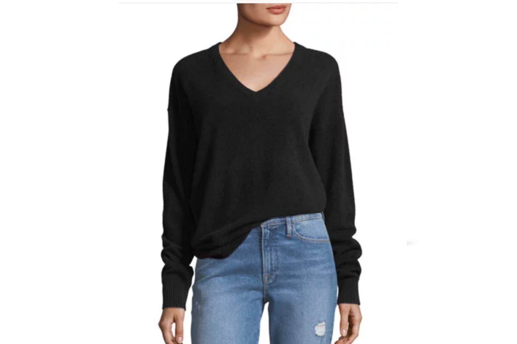 If ever an item of clothing had my name written all over it, it would be the ever versatile V-neck cashmere sweater. Mine is from Frame and it is super soft and oversized, a silhouette that I find I can pair with just about anything. Bonus points for its black hue. For my Cali date-night I wore it over a gorgeous Cinq A Sept chiffon pleated skirt but it will be equally fabulous with the new crop of blue and black denim I’ve recently picked up. I especially love the fit of these and these. And while we’re talking denim, I also snagged these Veronica Beard beauties and will share them in an upcoming post. But back to V-neck sweaters. They are most definitely a closet staple, something every woman should own. They come in all price points and colors and I’ve rounded up some of my favorites below.