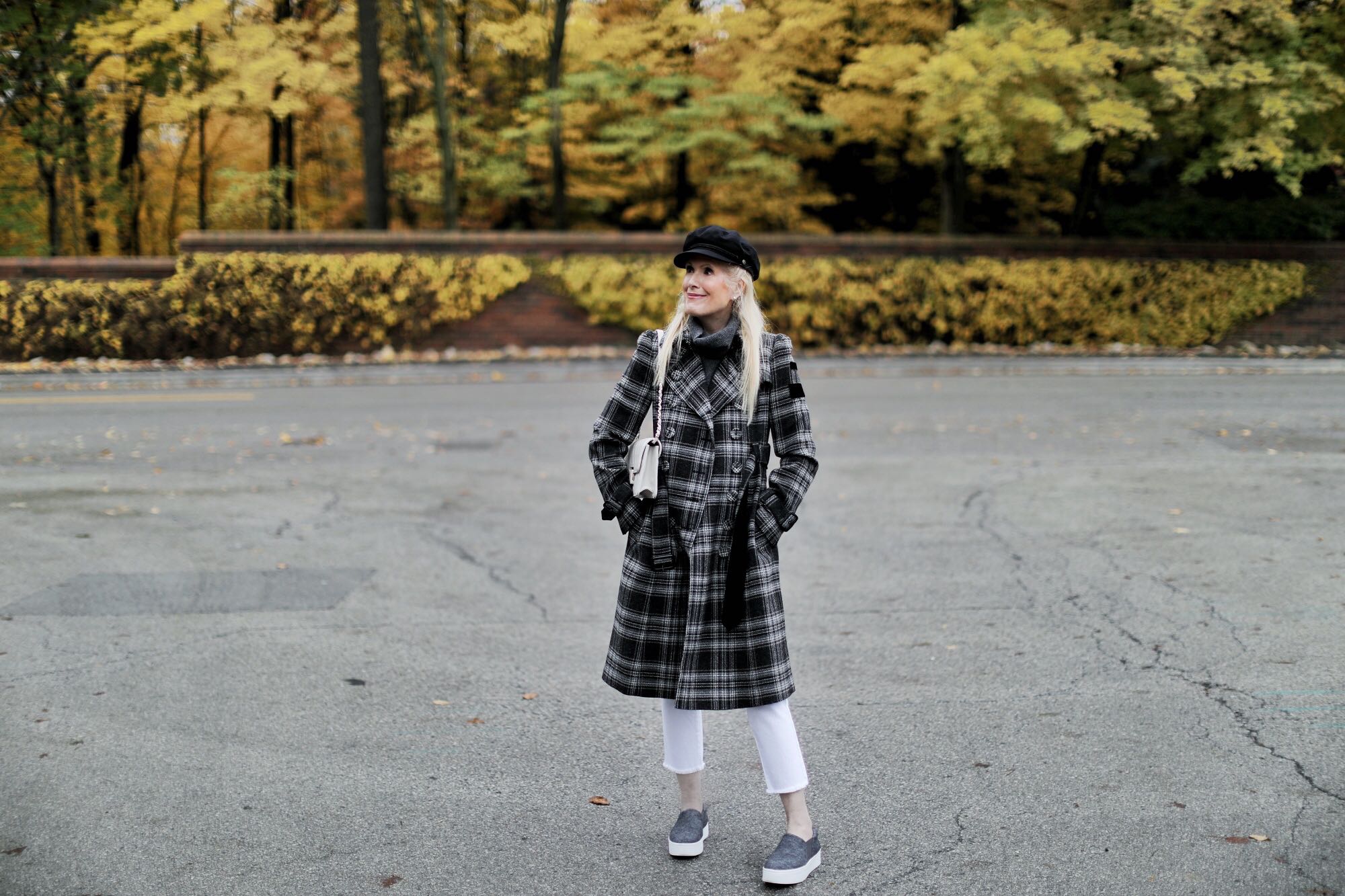 Wearing an old favorite today, a classic Burberry Tartan plaid topper that has seen me through many seasons and is still going strong. Nothing elevates an off duty look better than the addition of a great coat and since it’s coat season and I happen to have quite a collection, I’m loving all my options. Plaids have always been a favorite of mine. I currently have my eye on this beauty because of its gorgeous, mood-boosting colors. But back to today’s look. I really like the way the understated black, white and grey plaid compliments my white denim. It’s an unexpected twist that pairs nicely with my grey cashmere turtleneck and Vince slip-ons. Casual chic at its best.