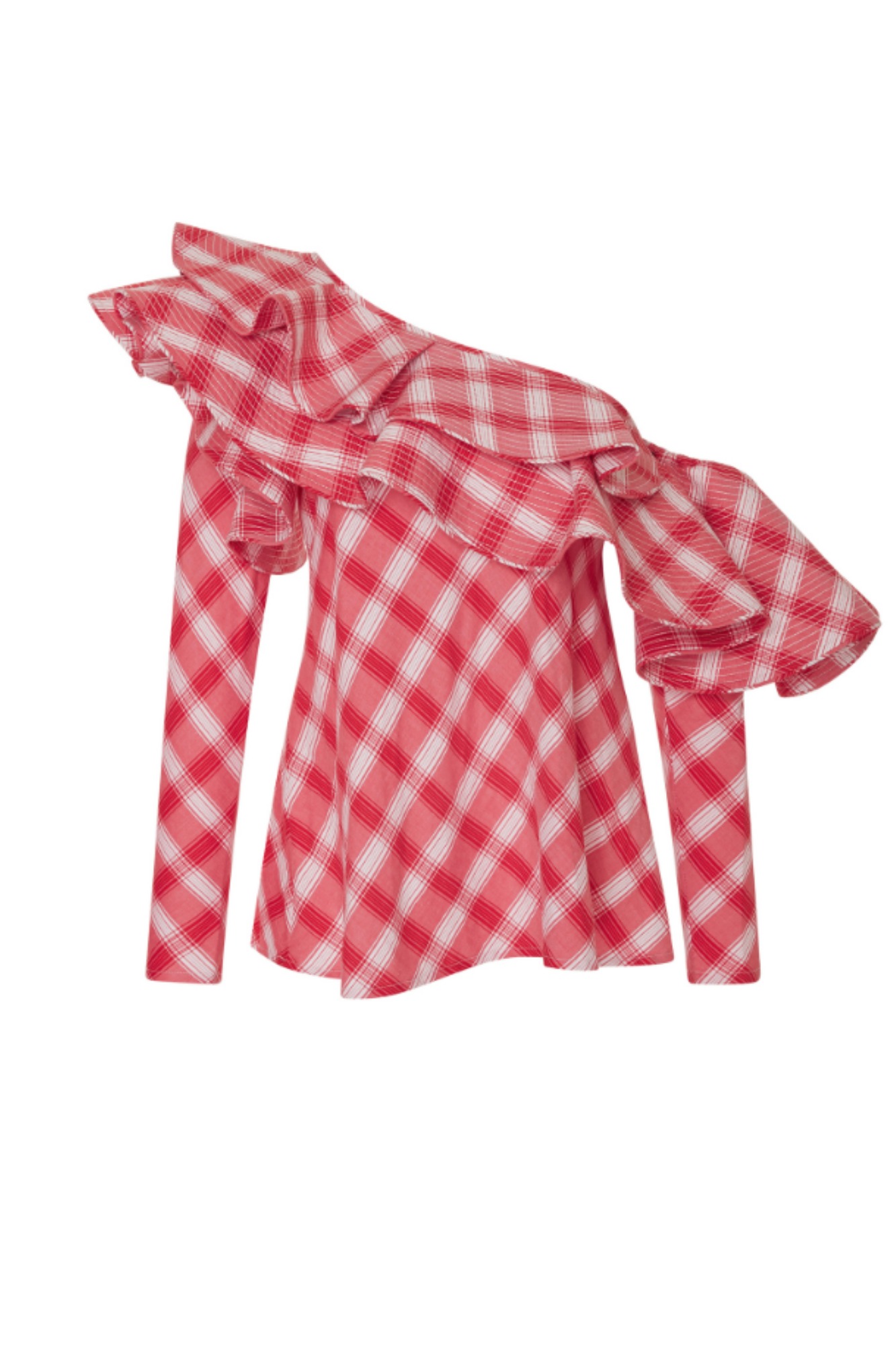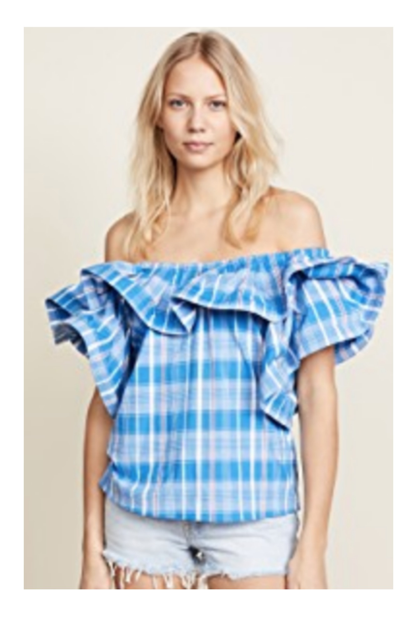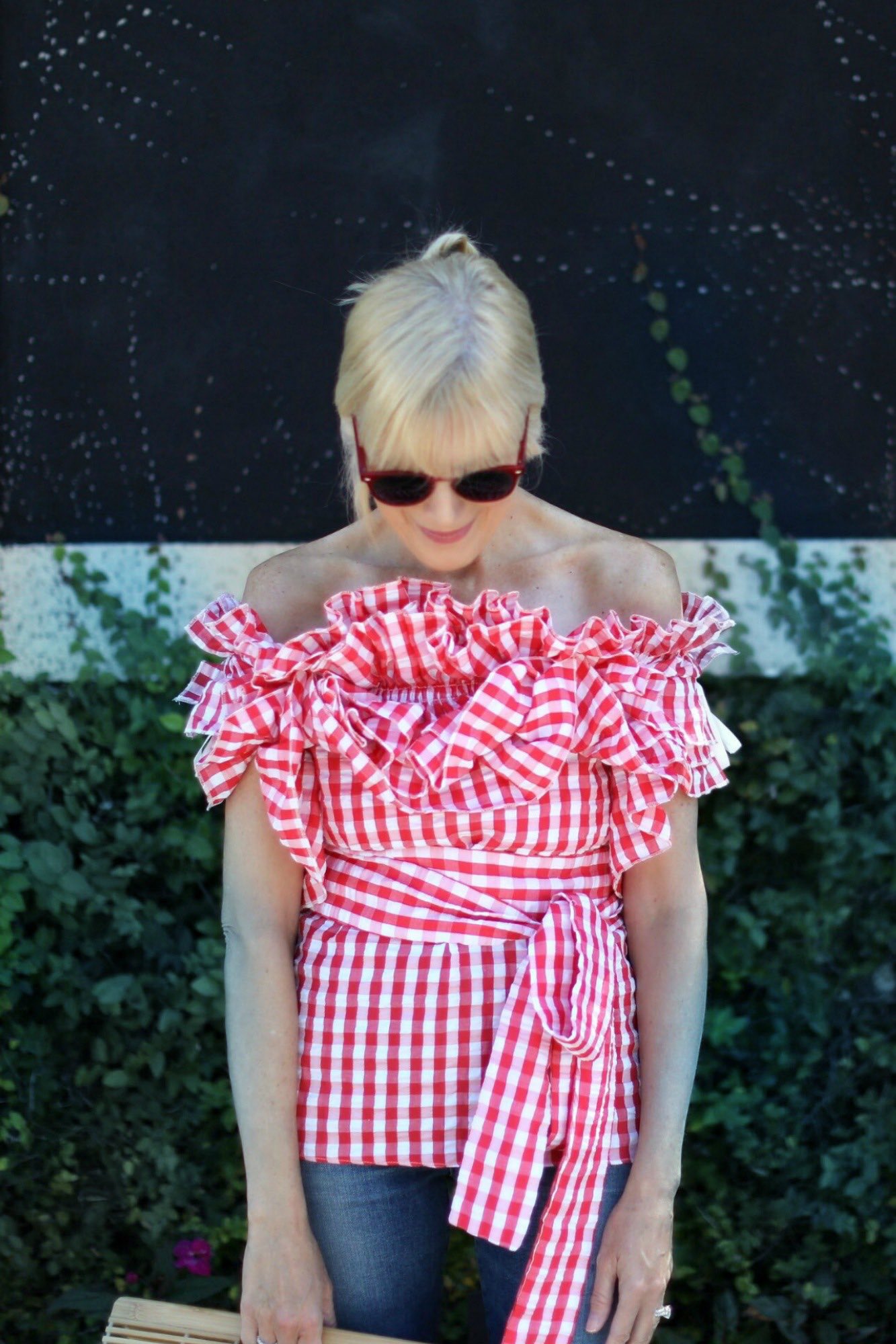 True story – When this top arrived at my door recently I was ecstatic. I loved the red gingham print and all those wildly fun ruffles. The waist sash is a nice addition too, and elevated this beauty even more. I hung it in my closet, figuring I didn’t need to try it on and catalogued it as must-wear for an upcoming lunch. The thing is, when I finally did put it on I have to admit that it kind of overwhelmed me. Were all those ruffles too dramatic? I hesitated.