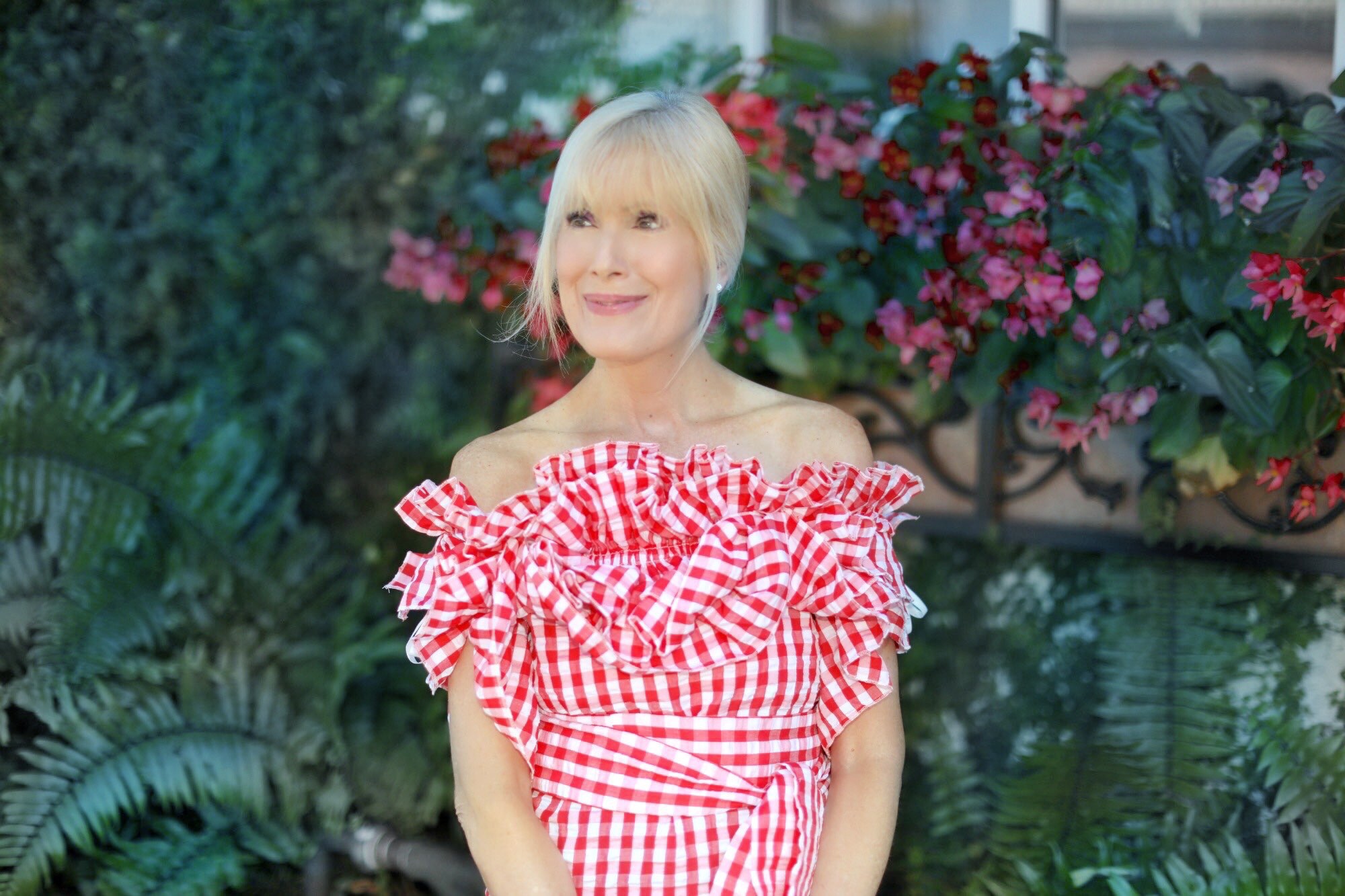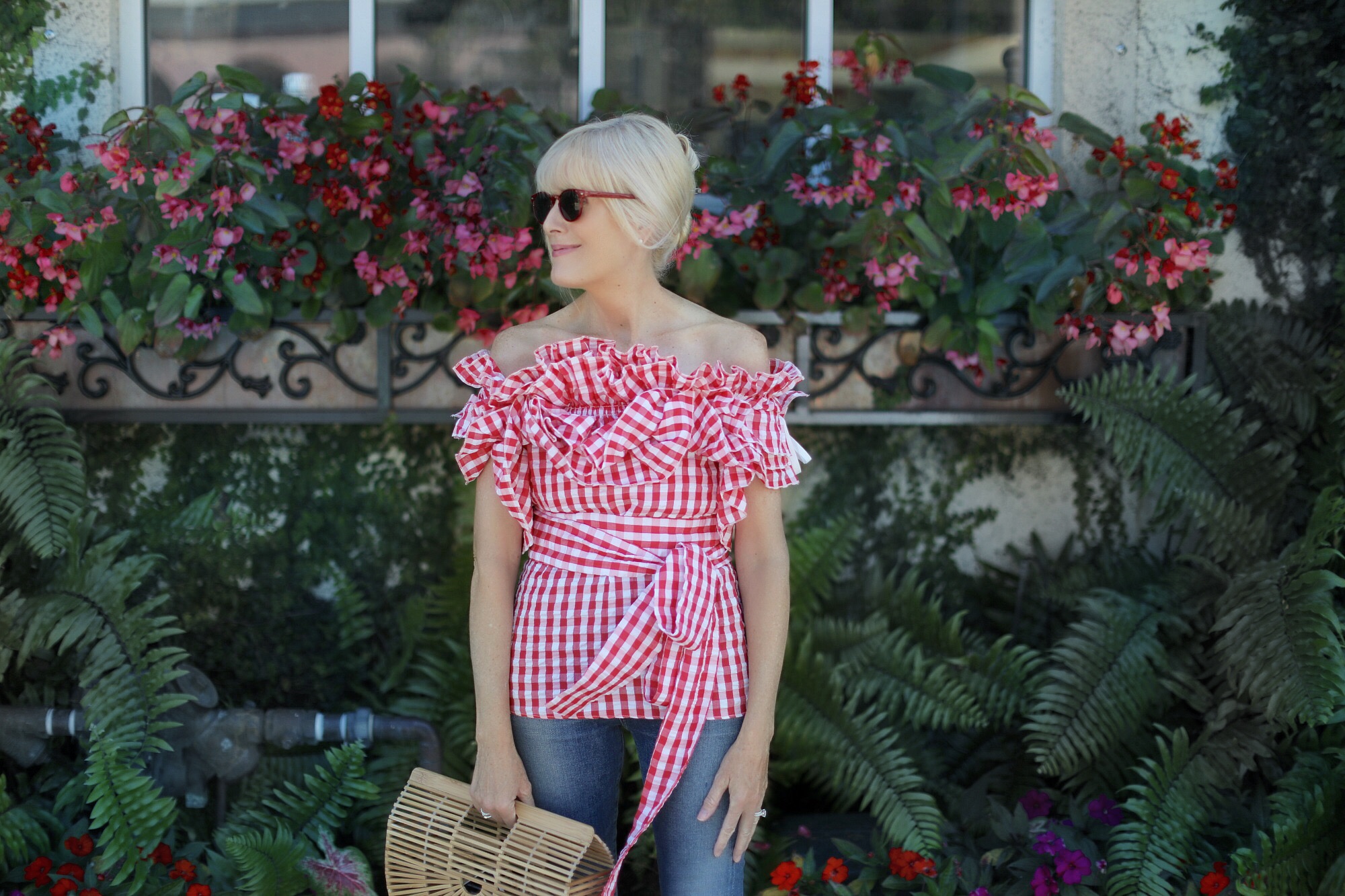 True story – When this top arrived at my door recently I was ecstatic. I loved the red gingham print and all those wildly fun ruffles. The waist sash is a nice addition too, and elevated this beauty even more. I hung it in my closet, figuring I didn’t need to try it on and catalogued it as must-wear for an upcoming lunch. The thing is, when I finally did put it on I have to admit that it kind of overwhelmed me. Were all those ruffles too dramatic? I hesitated.