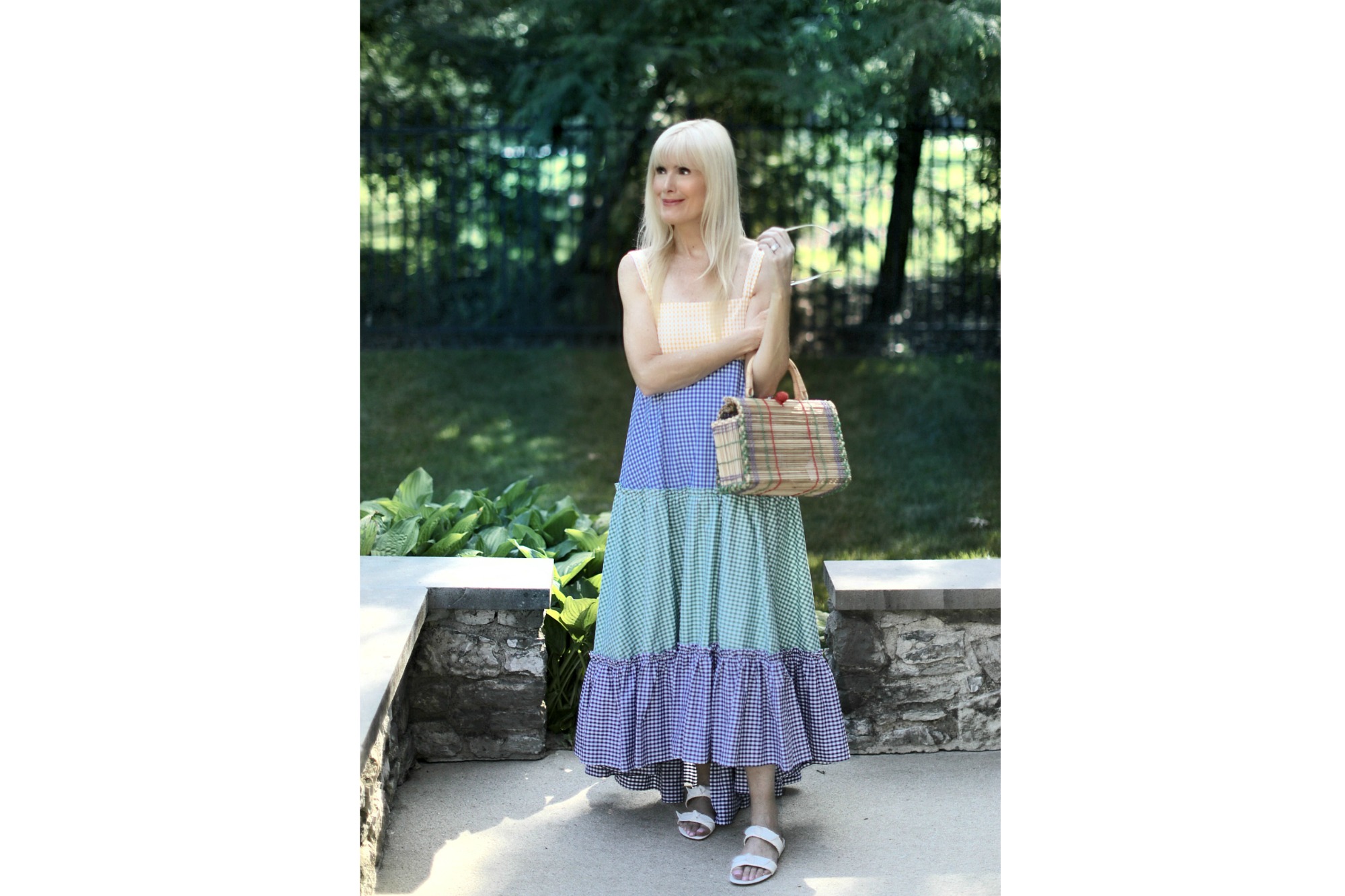 With summer comes the opportunity to go cool and casually chic in pretty little maxi dresses like this beauty from MDS Stripes. It’s tiers of multicolored gingham are just plain fun. I can see myself wearing this dress to the beach or to a barbecue. Love that versatility! Plus its made from a lightweight cotton-poplin which not only has a  beautiful drape but feels fabulous against the skin. Run don’t walk to snag this one because it’s currently on sale and going fast.