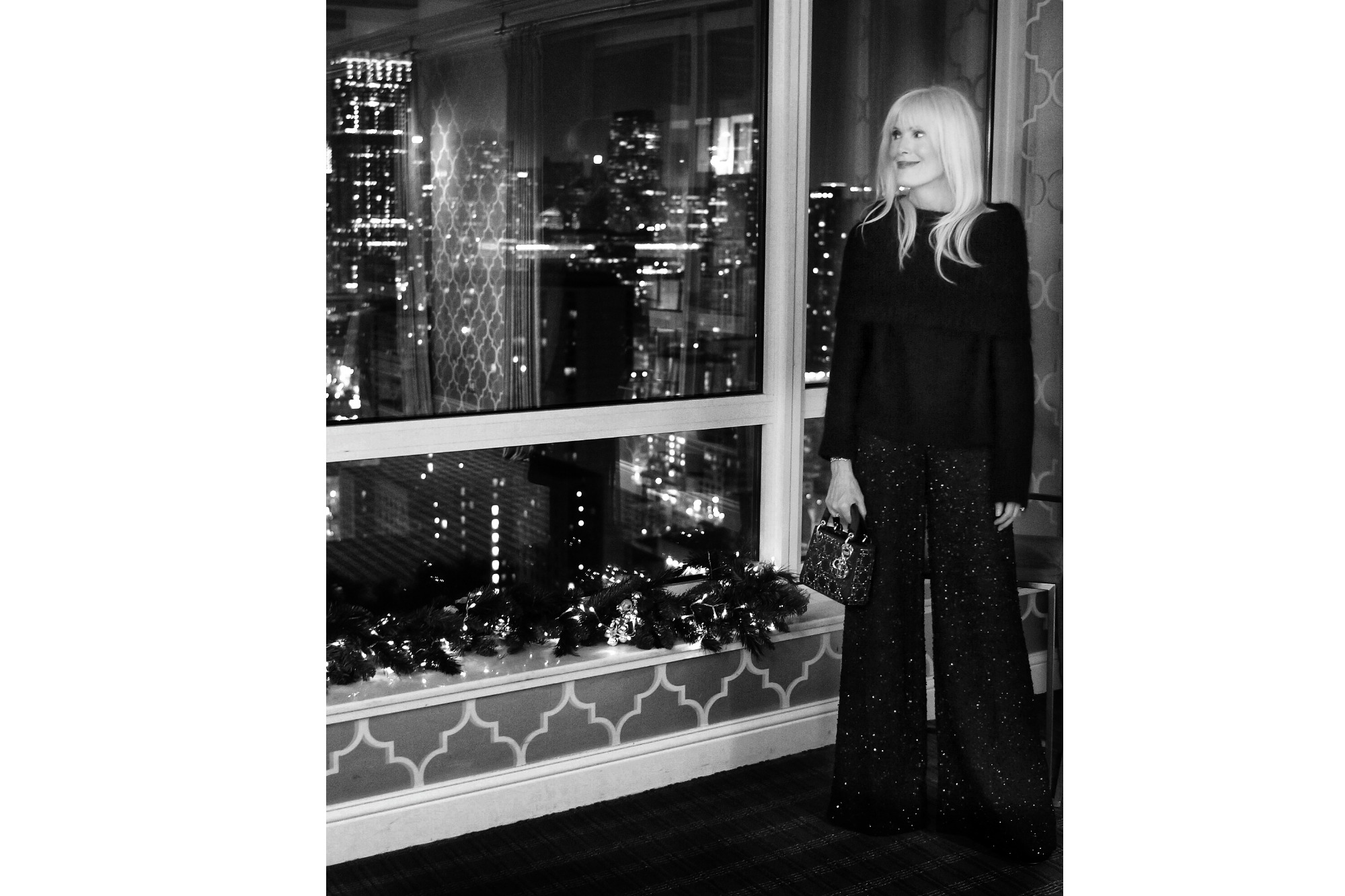 Good morning and happy Monday! Hope everyone had a great weekend! With the temperatures hovering in the teens around here lately it definitely wasn’t easy for me deciding what to wear to my holiday party the other night, until, that is, I spotted this cozy, oversized mohair sweater at Barney’s. It seriously wasn’t just calling my name, it was screaming it. In addition to ensuring that I would be comfortably warm all night, I loved its elevated style. Chic, cozy and my favorite color no less, my style aesthetic to a T. The pretty sweater turned out to be the perfect pairing with my beaded Alice + Olivia wide-leg pants (from several seasons ago but always classic) and Jimmy Choo heels. The sweater has an oversized cowl neck that can be worn multiple ways, including off the shoulders or as I chose to wear it, just skimming the tops of my shoulders. Turned out to be the perfect look for my Very Mary Holiday Party ;)