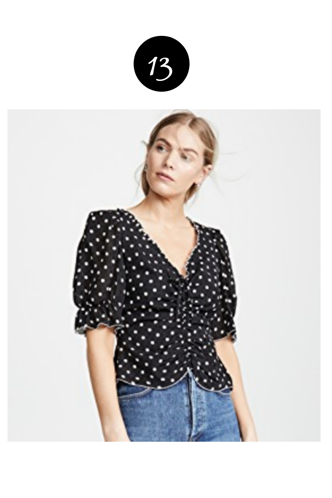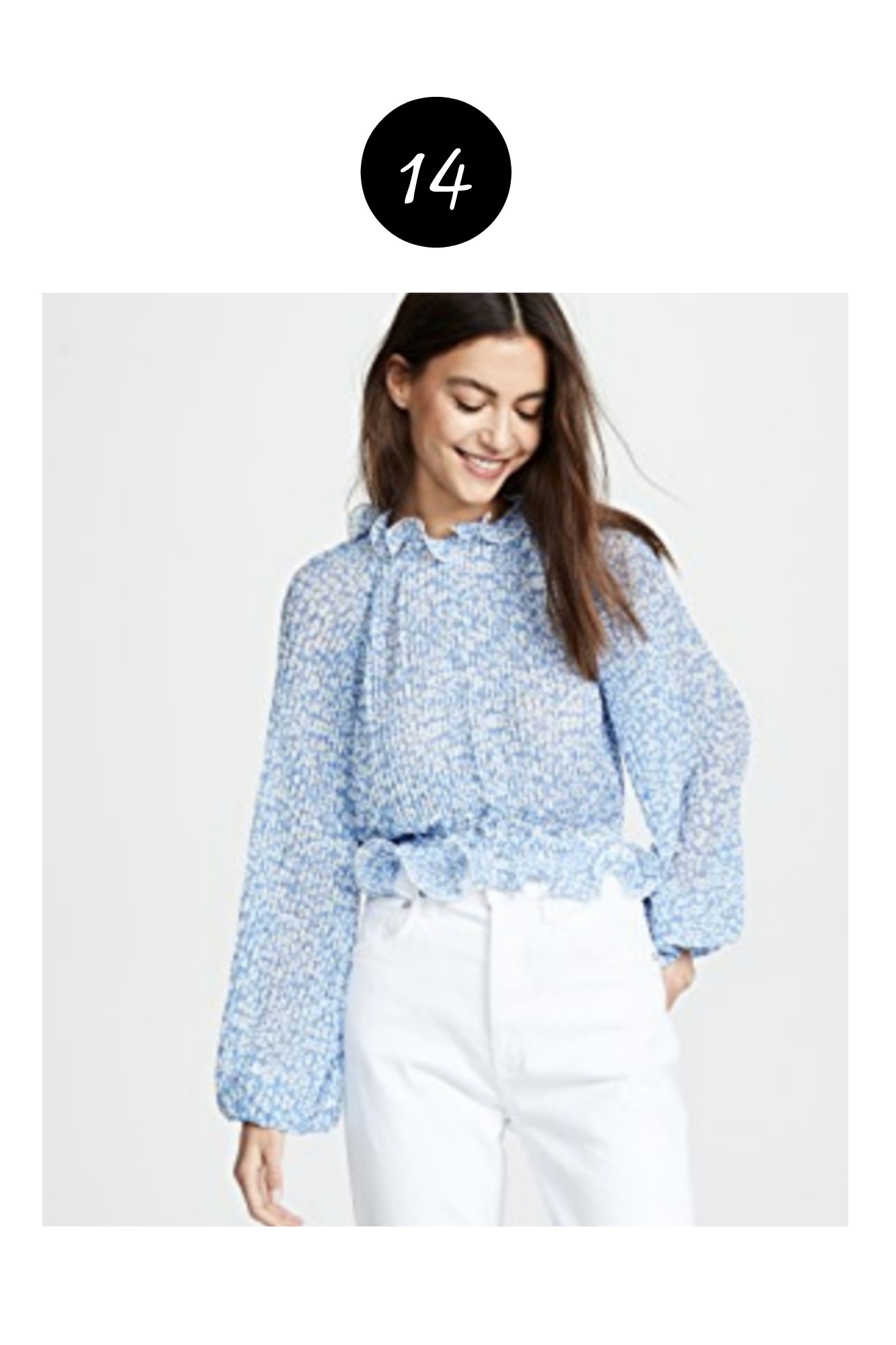 There’s something about a pretty little summer top that I find hard to resist. Details like ruffles, interesting sleeves, modern silhouettes and eye-catching fabrics always call out to me whether shopping on line or in a brick and mortar store. And I love that the beauty of summer affords the opportunity to wear these fanciful, fun finds without having to cover them up with a heavy coat. My little gingham ruffled number is from a few seasons ago but below is a roundup of some of the best of the best tops out there right now.